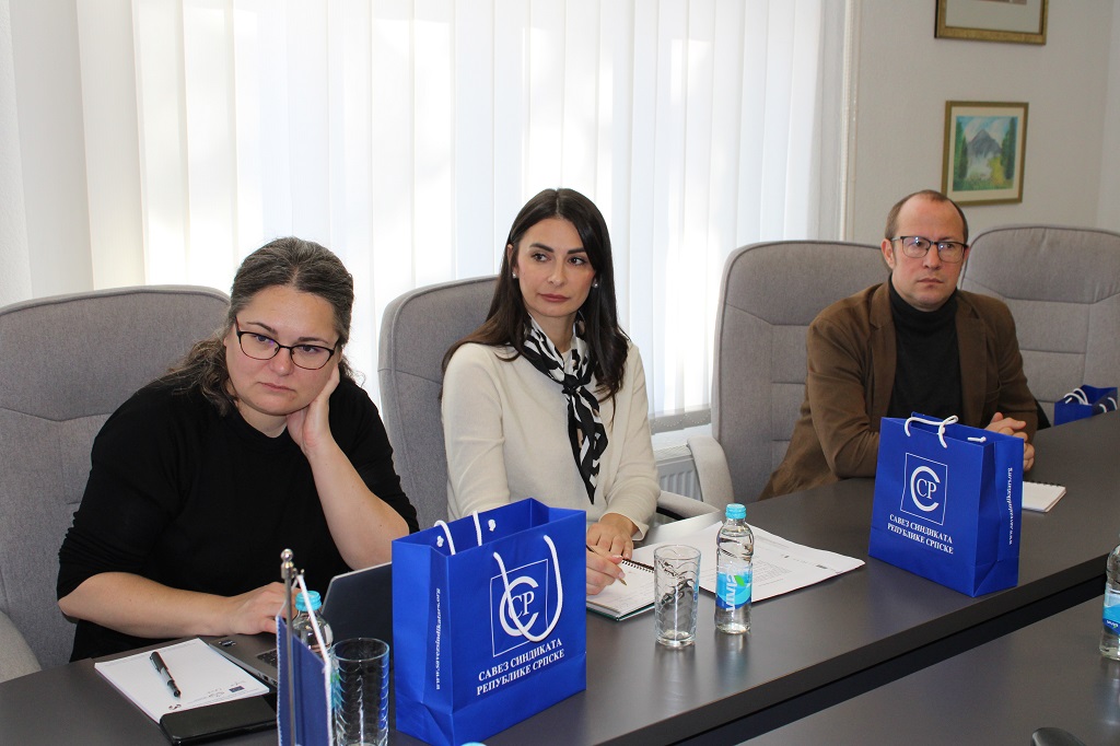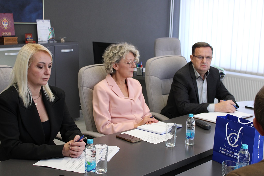 У Дому синдиката у Бањој Луци данас је одржан састанак представника Савеза синдиката Републике Српске са представницима Међународне конфедерације синдиката и Паневропског регионалног вијећа (MКС/ПЕРК). Делегацију Савеза предводио је предсједник Горан Станковић, а делегацију Паневропског регионалног вијећа Антон Лепик, извршни секретар.