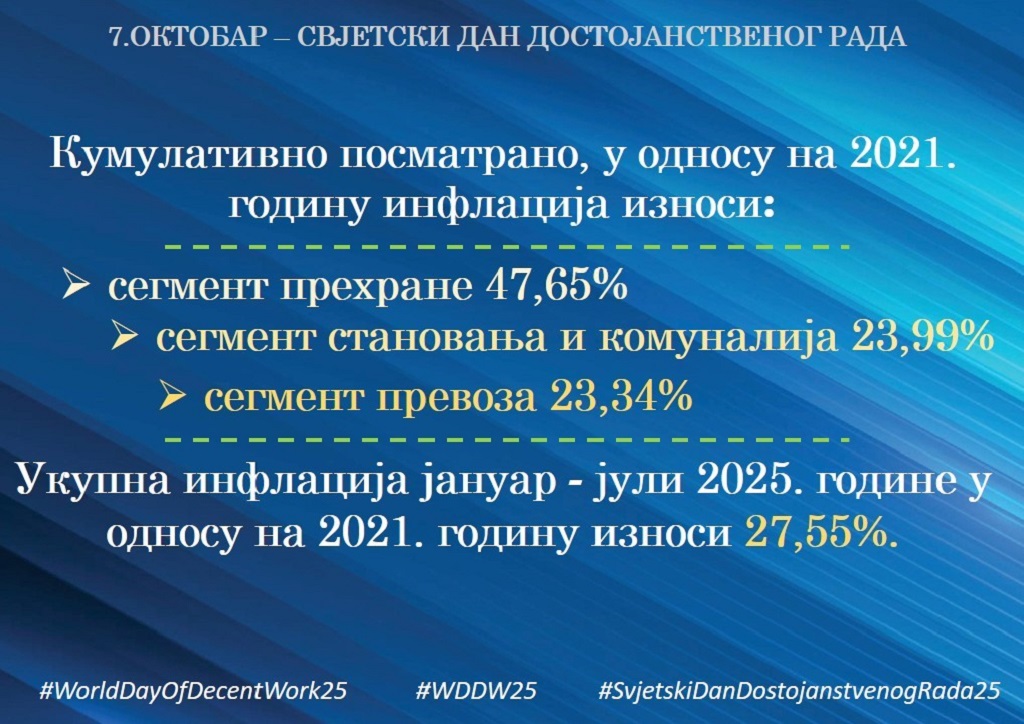 Iz Saveza sindikata Republike Srpske ističu da je činjenica da je u posljednje četiri godine prisutan enormni, nekontrolisani, neopravdani rast cijena svih proizvoda i usluga, a prvenstveno prehrabmenih proizvoda. Ukoliko se osvrnemo na ovaj period, za posledicu imamo da je, kumulativno posmatrano, inflacija samo u segmentu prehrane 47,65%.