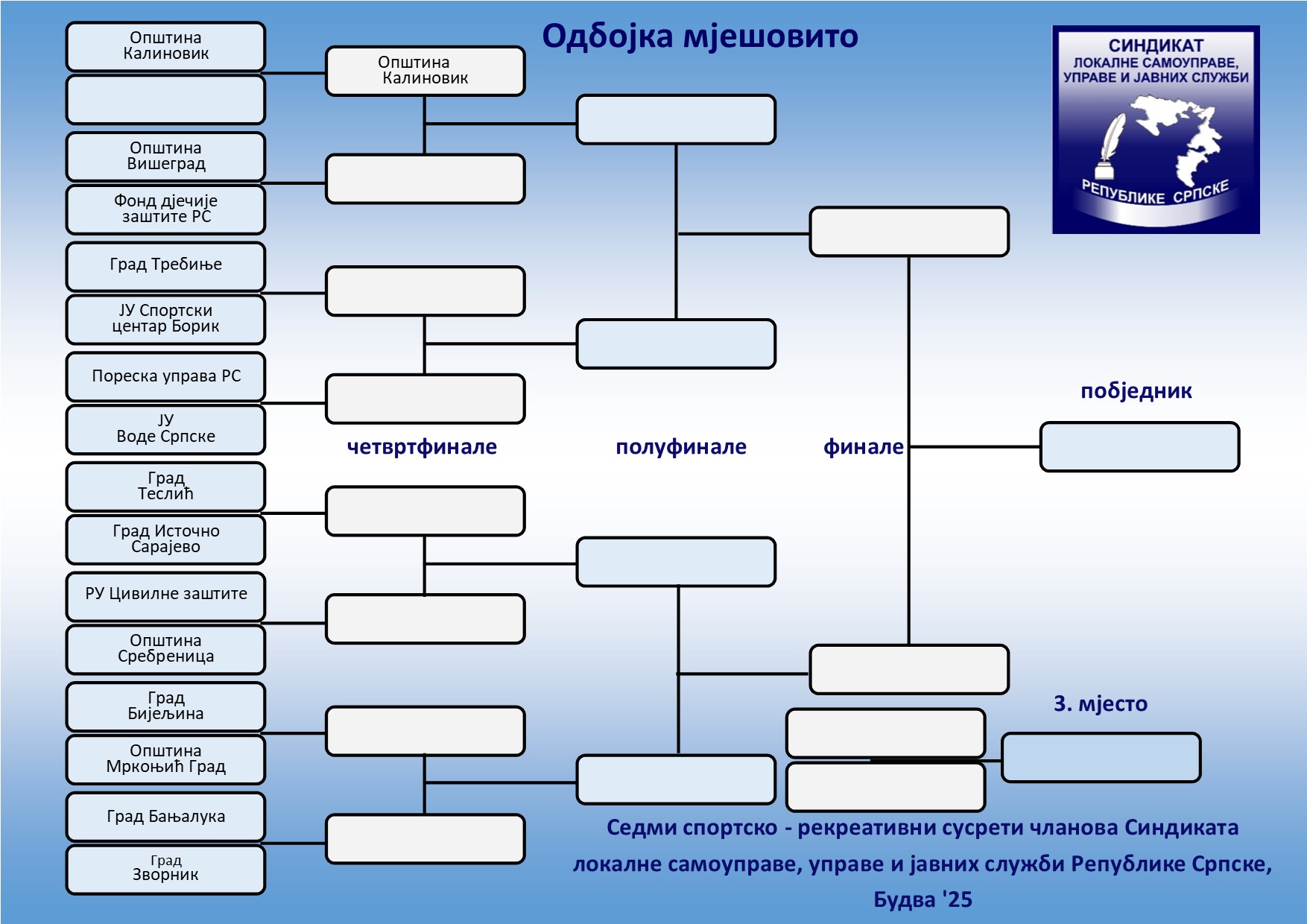 ЕКИПЕ СУ ОБАВЕЗНЕ ПОЈАВИТИ СЕ НА ТЕРЕНУ 10 МИНУТА ПРИЈЕ ЗАКАЗАНОГ ТЕРМИНА. ПРОМЈЕНА ТЕРМИНА МОГУЋА САМО УЗ ДОГОВОР С ДЕЛЕГАТОМ