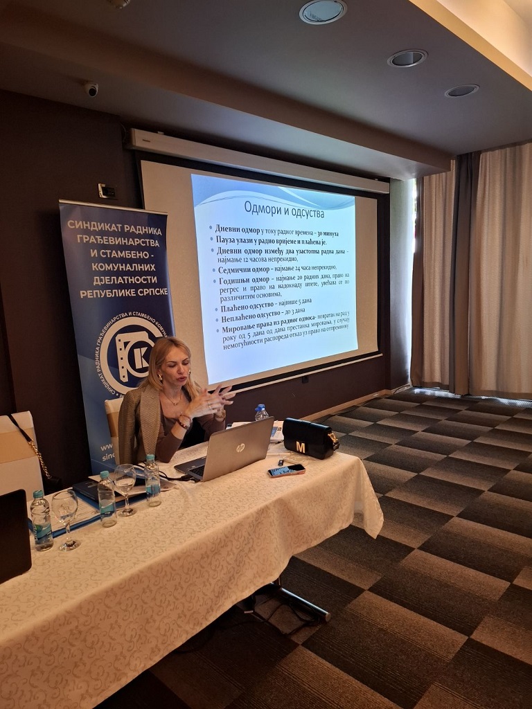 Dijana Maksimović, dugogodišnji pravnik Službe za besplatnu pravnu pomoć u Savezu sindikata Republike Srpske u drugom predavanju, na temu radnog zakonodavstva, učesnike sabora je podsjetila na sva prava, obaveze i odgovornost, koja proističu iz radnog odnosa.